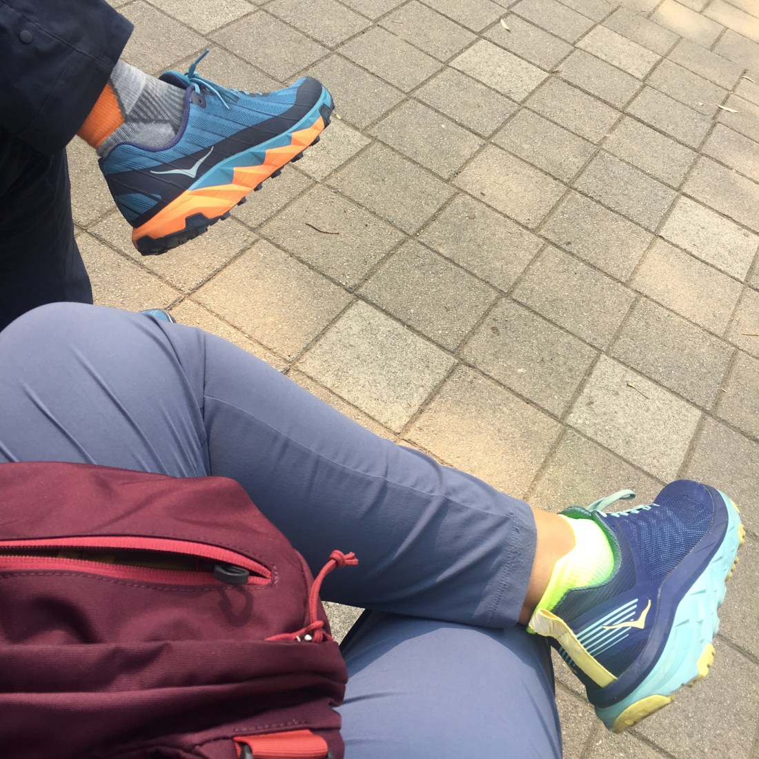 We’re wearing Hokas the best shoe a non-shoe liking person could wear. Even people who don’t mind wearing close toed shoes, or even like them, these are the best. Little clouds cupping your feet. They come in wide! Surgeons and nurses trust them (the guy at REI said so. I got mine and broke them in (which isn’t a thing you just wear them and they’re perfect) at Macy’s. I kept pitching them to Zach. He scoffed. Then two months later he got his. #victorious